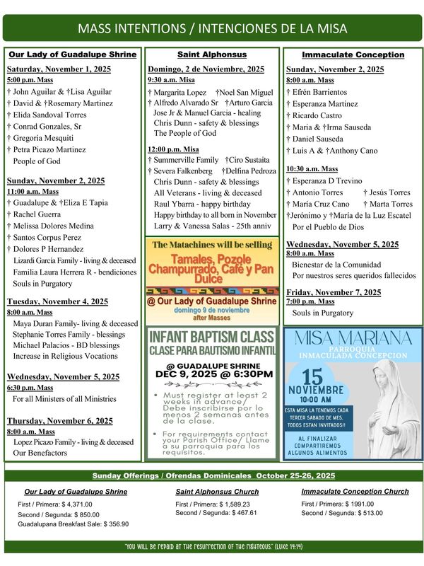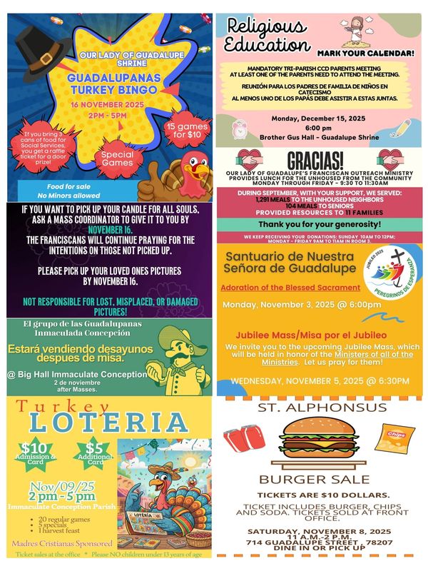 The community of Our Lady of Guadalupe Church takes as its mission to know, to love, and to serve Jesus. To build a community of believers, to speak and act for the victims of injustice, to evangelize, and to respect the dignity in all people-beginning in our own families, and then in the wider culture in which we live.