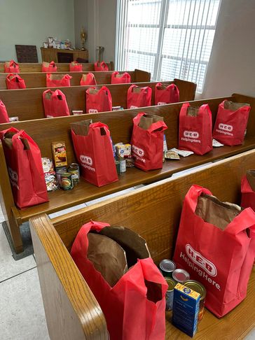 We provide bags of food for registered families over the age of 60 and distribute the food on First Thursday of each month.